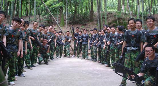訓(xùn)練的第一個(gè)項(xiàng)目是鐳戰(zhàn)對抗。4個(gè)隊(duì)迅速組成兩個(gè)對抗的隊(duì)伍,經(jīng)過兩場激戰(zhàn),最終龍之隊(duì)和紅牛隊(duì)以飽滿的戰(zhàn)斗激情取得開門紅。第二個(gè)項(xiàng)目為沼澤浮橋。考驗(yàn)團(tuán)隊(duì)協(xié)作和邏輯思維能力,每個(gè)隊(duì)伍利用三個(gè)油桶和兩塊木板,讓所有隊(duì)員一起通過一片沼澤地,整個(gè)過程只有油桶可以接觸地面,方法不限,所用時(shí)間最少者獲勝。尖兵隊(duì)和紅牛隊(duì)領(lǐng)先到達(dá)目的地。