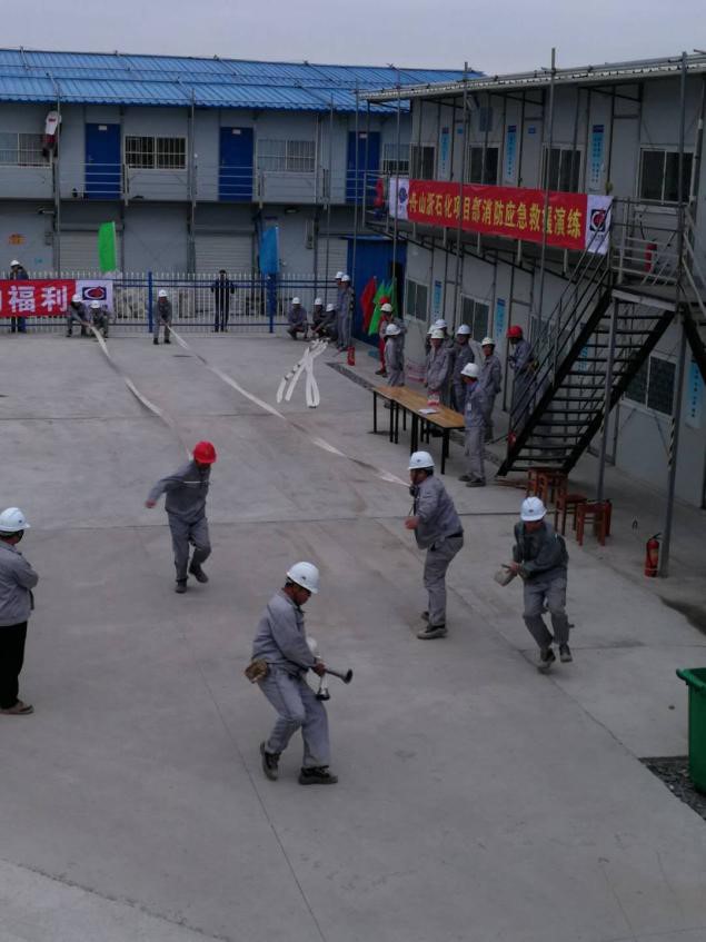 10月15日,公司舟山浙石化項(xiàng)目部在15#生活營(yíng)地組織開展了一次“消防應(yīng)急救援演練”。演練旨在普及消防安全應(yīng)急知識(shí),提高全員風(fēng)險(xiǎn)防范意思和災(zāi)害應(yīng)對(duì)能力,檢驗(yàn)項(xiàng)目部在突發(fā)事故中的應(yīng)急處置能力和應(yīng)急救援能力。