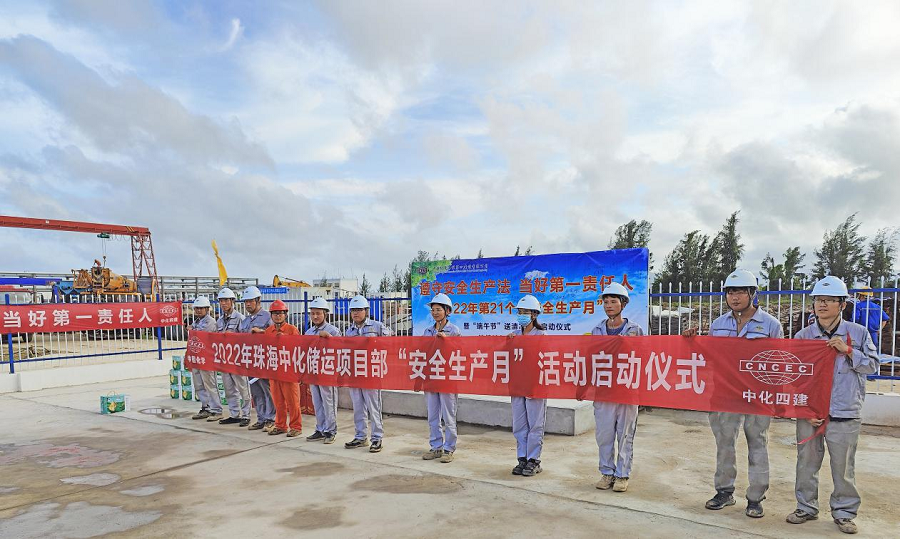 6月2日,中南公司珠海中化儲運項目部在施工現(xiàn)場舉行2022年“安全生產(chǎn)月”活動啟動儀式。活動期間,項目部將組織全員開展安全基礎(chǔ)知識培訓(xùn),規(guī)范安全管理,宣傳貫徹安全生產(chǎn)法,狠抓專項整治,扎實推進安全生產(chǎn)提升年活動,推動隱患排查治理無死角,組織參加公司“十佳班前會”和“安全周例會”評比,舉辦觸電事故應(yīng)急救援演練等活動。