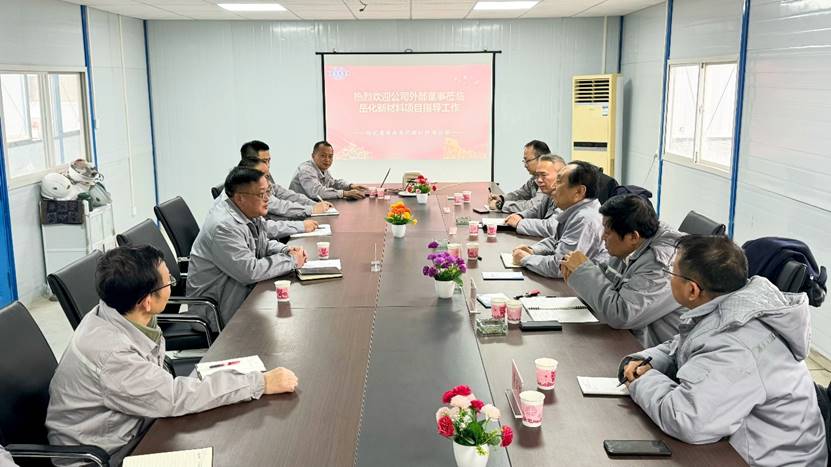 在項目現場,外部董事一行實地考察了項目建設情況,聽取了項目部工作匯報,對項目部在施工進度、技術管理、質量安全等方面取得的成績予以充分肯定,并就下一步工作提出要求。一是強化項目精益化管理,嚴控成本,加快辦理結算,確保工程款回收。二是項目團隊要做好“傳幫帶”,通過以老帶新,加快推進年輕職工成長,為公司發展提供強有力的人才支撐。三是高效完成項目掃尾作業,并同步做好交工資料整理工作,確保資料齊全準確。四是要認真做好項目總結,提煉實踐經驗。檢索項目從啟動至竣工的經驗和問題,為后續承建同類項目鋪平道路,提升項目建設水平,做強新材料項目品牌。