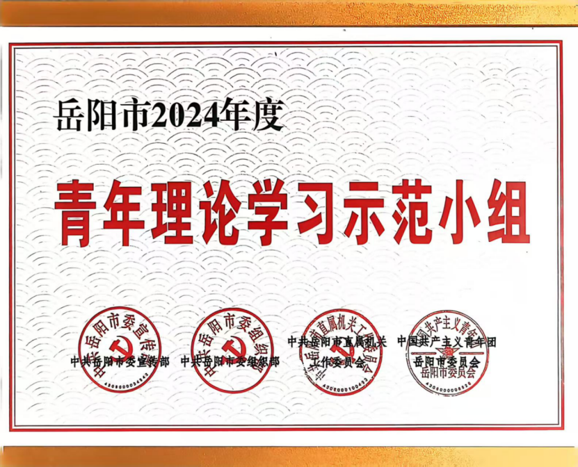 另訊,岳陽(yáng)市委宣傳部、市委組織部、市直機(jī)關(guān)工委、共青團(tuán)岳陽(yáng)市委印發(fā)《關(guān)于表彰2024年度青年理論學(xué)習(xí)先進(jìn)典型的通報(bào)》,公司團(tuán)委青年理論學(xué)習(xí)小組被評(píng)為“岳陽(yáng)市青年理論學(xué)習(xí)示范小組”。