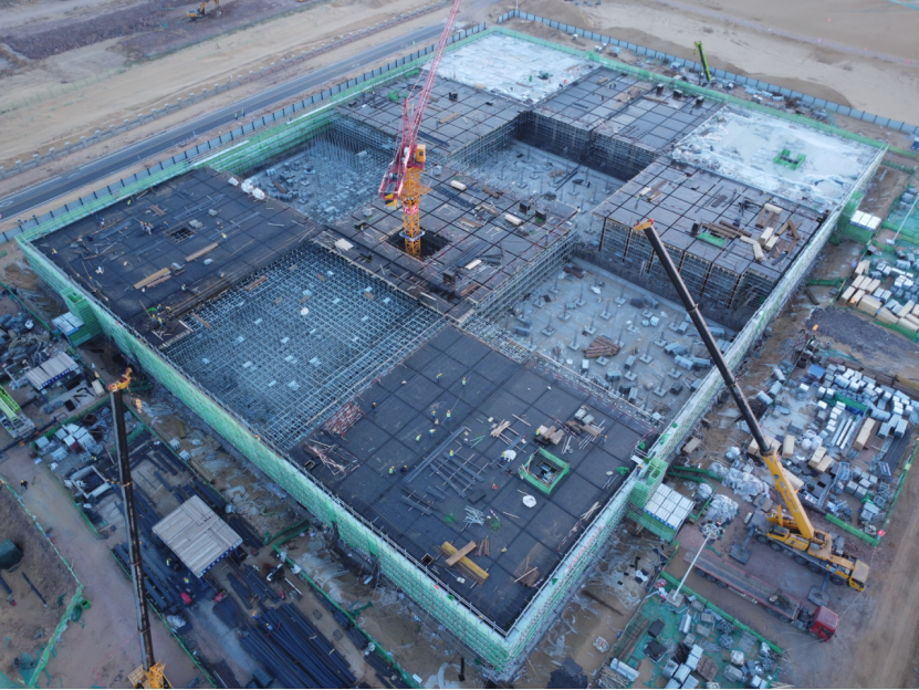截至目前,項目各項建設工作正持續高效推進:高濃鹽水事故池主體結構已完成70%,烯烴污水調節池底板澆筑完畢、頂板及池壁施工全面展開,變電所基礎結構完成70%,裝置事故水罐主體結構完成95%,機柜間基礎完成70%,地下管道施工已推進400米,后續工程正按計劃穩步實施。
