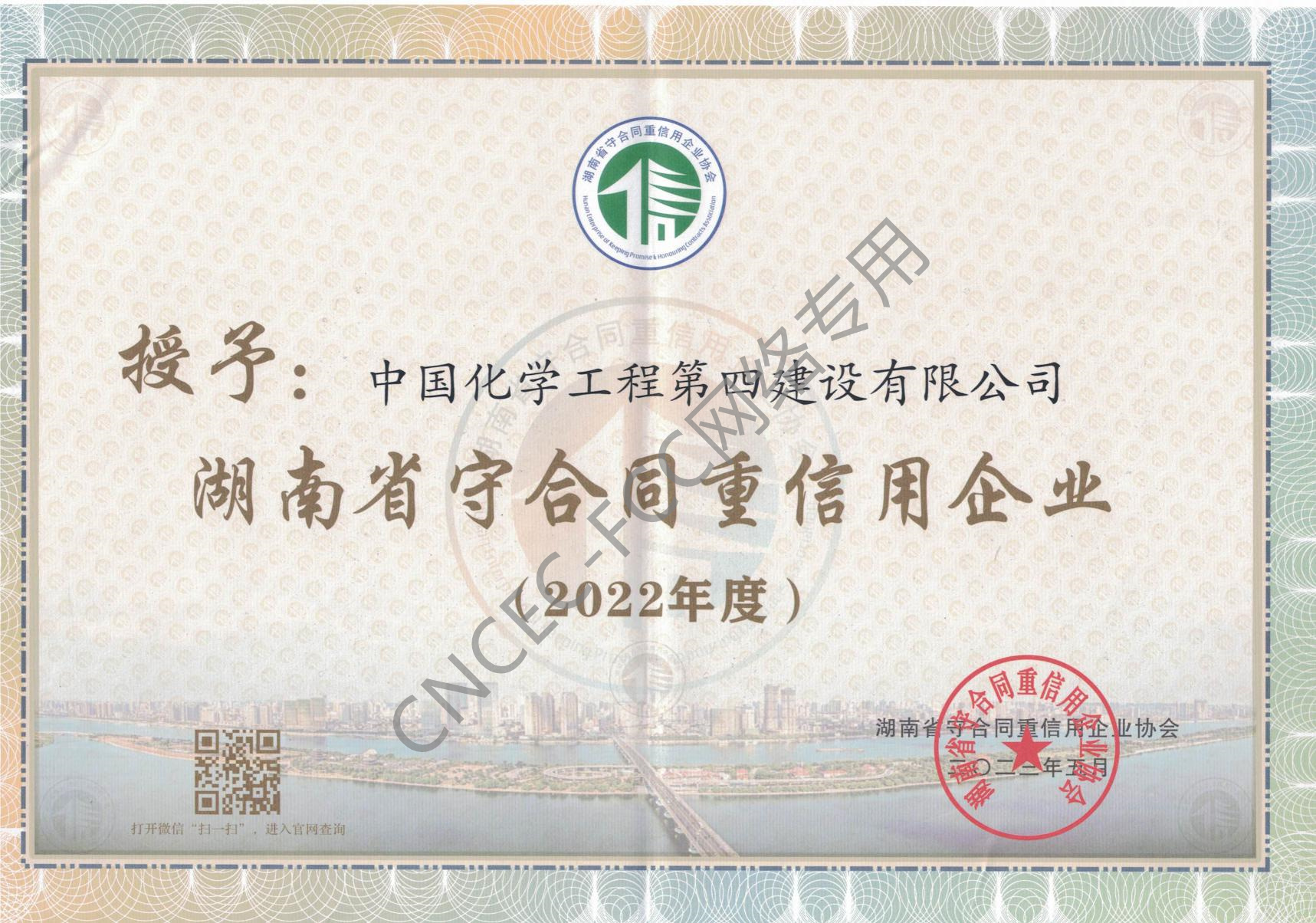 湖南省2022年度守合同重信用企業(yè)證書